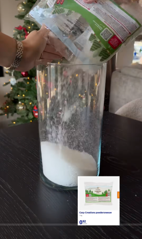 Bedek de bodem van de vaas met een dun laagje nepsneeuw. Zo krijg je direct die knusse winteruitstraling.