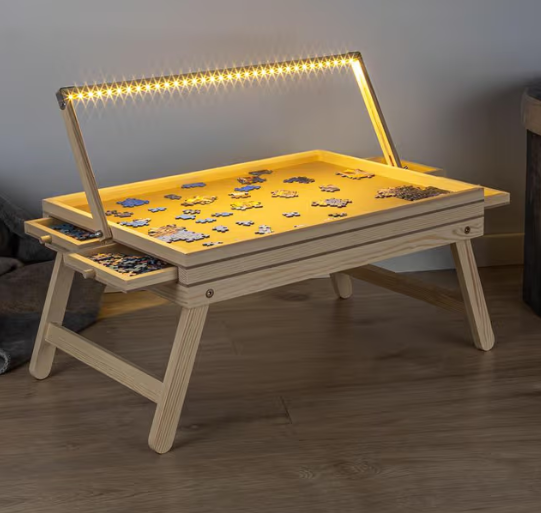 Of je nu net begint of graag puzzels van 1000 stukjes legt: deze tafel zorgt voor meer overzicht, comfort en plezier. De lades, het solide houten blad en de praktische verlichting maken dat je op elk moment moeiteloos verder kunt.