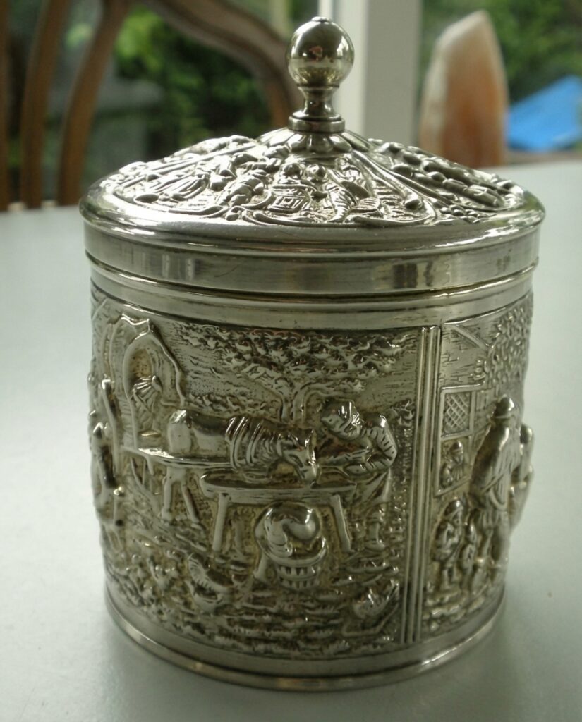 Vroeger had je in heel wat huizen zo’n sierlijke metalen bus op tafel staan of ergens in het keukenkastje. Dat was de bekende theebus: handig in gebruik en meestal ook nog eens mooi om te zien. Vooral de exemplaren die voor Douwe Egberts zijn gemaakt, kennen veel mensen nog. Ze kwamen uit de Nederlandse zilverfabriek Herman Hooijkaas en stonden jarenlang als vertrouwd item in de keuken.