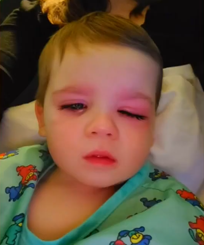 In een emotioneel bericht op Facebook deelt Eden dat haar zoon op een ochtend wakker werd met een extreem opgezwollen oog. “Toen ik hem in zijn bedje zag, schrok ik me kapot. Het witte van zijn oog duwde tussen zijn oogleden door en hij had koorts,” schrijft ze. “Ik riep mijn man dat hij meteen de auto moest pakken. Ik was bang dat hij zijn zicht zou kwijtraken.”