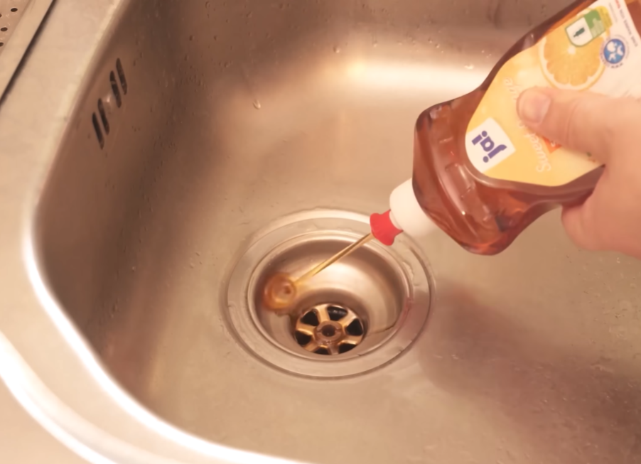 Schenk een halve fles afwasmiddel direct in de afvoer.