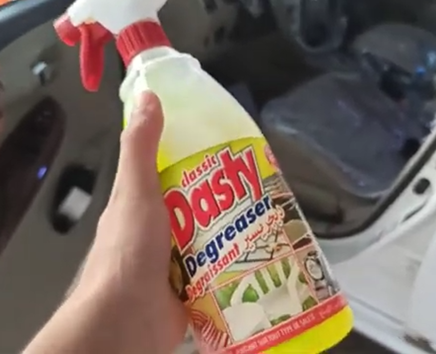 Ook in en rond de auto is Dasty handig. Velgen schoonmaken, kunststof delen in het interieur ontvetten en soms vlekken uit bekleding halen gaat er makkelijk mee. Wees bij lak, kunststof panelen en in de motorruimte wel voorzichtig: spaarzaam gebruiken en altijd goed naspoelen.