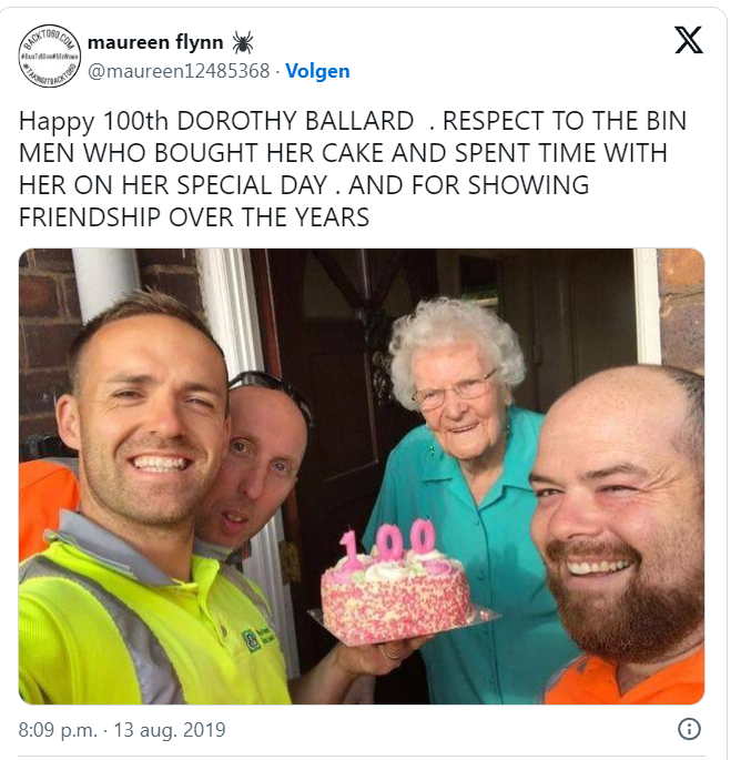 Op oudere leeftijd kan het leven behoorlijk eenzaam voelen, zoals veel mensen helaas meemaken. Neem nu Mercy Ballard, een oudere dame die meestal haar dagen alleen doorbrengt. Dit kwam extra naar voren toen ze in haar eentje haar honderdste verjaardag vierde. Gelukkig was haar trouwe vriend, de lokale vuilnisman, hier zich bewust van en deed iets bijzonders.