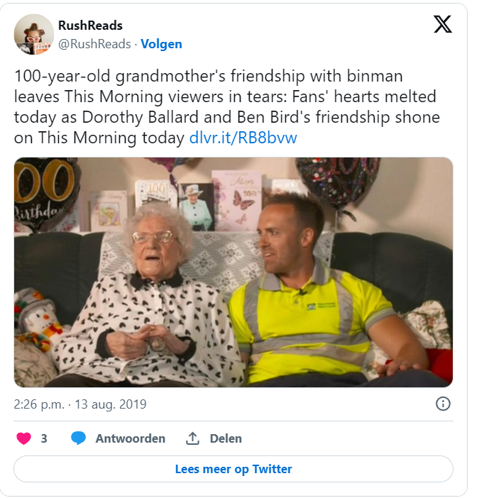 Dit hele gebeuren laat zien hoe belangrijk medeleven kan zijn in het tegengaan van eenzaamheid, vooral onder ouderen. Ben toonde met zijn simpele maar betekenisvolle gebaar precies hoe kleine daden van vriendelijkheid een enorm verschil kunnen maken voor iemand die vaak alleen is. We kunnen allemaal wat leren van Ben’s warme actie.