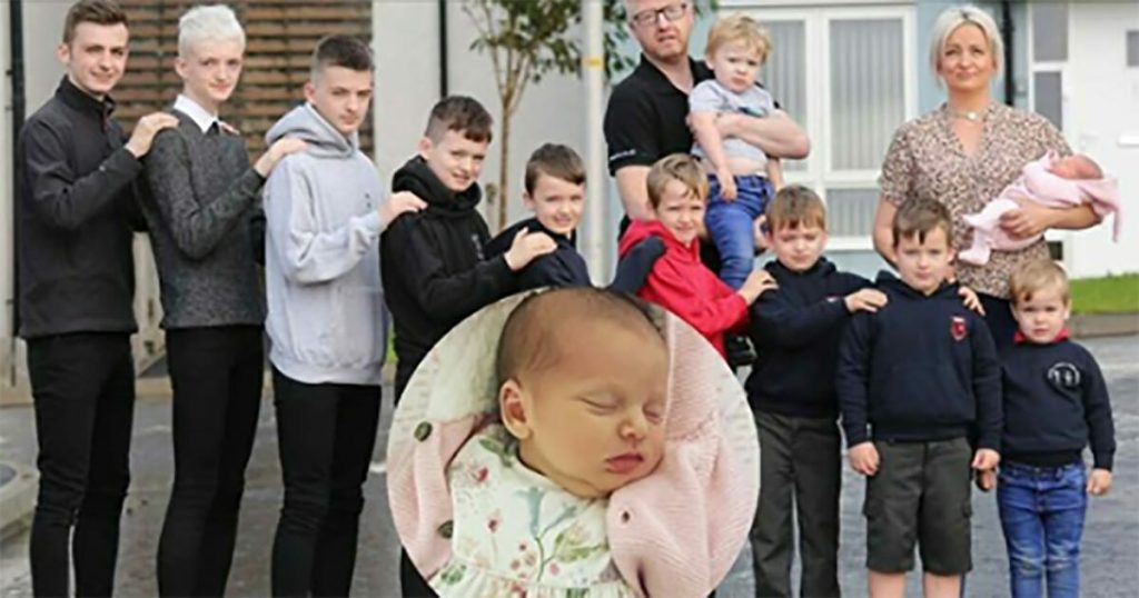Na tien jongens kwam er eindelijk een meisje ter wereld in het gezin van deze 39-jarige moeder. Alexis Brett, de eerste vrouw in het Verenigd Koninkrijk die tien zonen achter elkaar kreeg, is niet langer het enige vrouwelijke lid van haar gezin na de komst van dochter nummer elf.