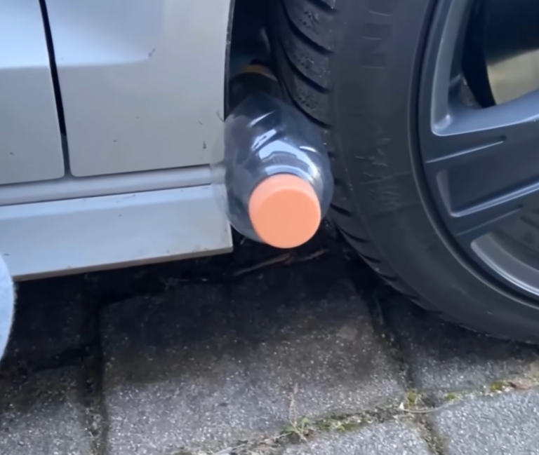 Zie je bij iemands auto een plastic fles tussen het wiel vastzitten? Geef het meteen door aan de eigenaar. Veel mensen kennen deze methode nog niet, terwijl hij wereldwijd al duizenden keren is toegepast.