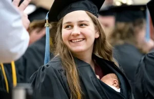 Hartverwarmend: 24-jarige studeert af met haar 10 dagen oude baby in...