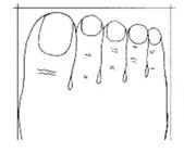 Tenslotte is er nog de ‘uitgestrekte’ voet, die wordt gekenmerkt door een langere voet en licht kruiselings liggende tenen. Dit type voet hangt vaak samen met introverte persoonlijkheden. Mensen met deze voetvorm zijn geneigd om hun eigen geheimen te bewaren en geven er meestal de voorkeur aan niet te veel tijd in gezelschap van anderen door te brengen. Vaak hebben ze last van verrassende stemmingswisselingen.