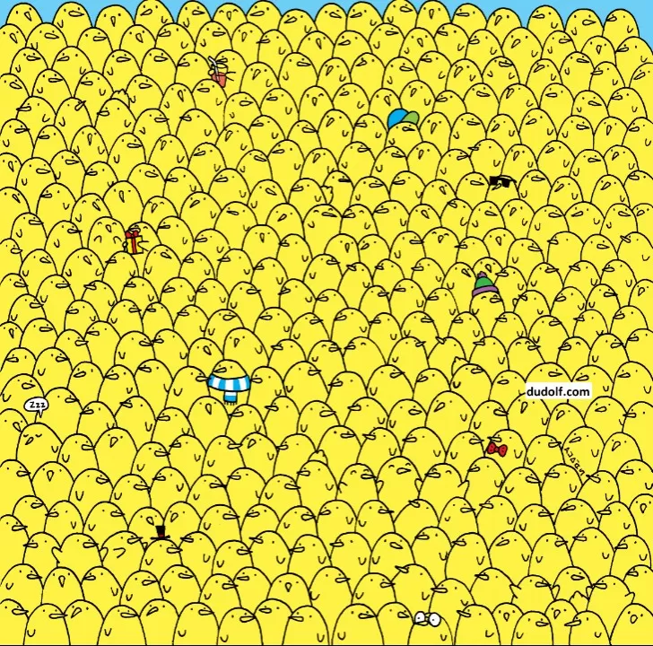 Optische illusies en visuele puzzels zijn fascinerend en vormen een leuke uitdaging voor zowel je hersenen als je ogen. Ze zijn gemaakt met verschillende moeilijkheidsniveaus en dagen je uit om zo snel mogelijk oplossingen te vinden. De bedoeling is om de puzzel in recordtijd op te lossen, iets dat veel mensen graag proberen en onderling delen. In dit artikel bekijken we een tekening van kunstenaar Gergely Dudás. Op de afbeelding zie je een grote groep kuikens, maar er zitten ook vijf citroenen ergens tussen verstopt.