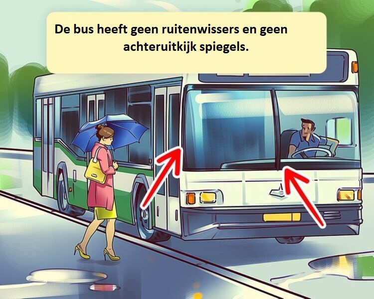 Ben je klaar voor de uitdaging van vandaag? Kun jij de fout op het onderstaande beeld ontdekken? Hier is een afbeelding van een Bus met een passagier die staat te wachten om in te stappen. Maar als je goed kijkt, kan je iets vreemds opmerken. Kun je uitvogelen wat niet klopt?